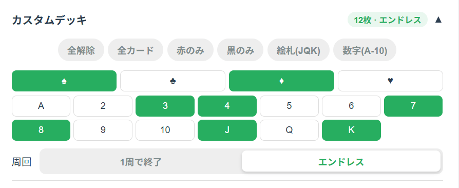 画像のように練習したいスートやランクを選んでオリジナルのデッキを作れる機能です。