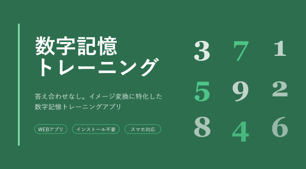 数字記憶のアプリも作ってほしいとのリクエストをいただきましたので、トランプ記憶に続き、数次記憶のトレーニングアプリもリリースします!